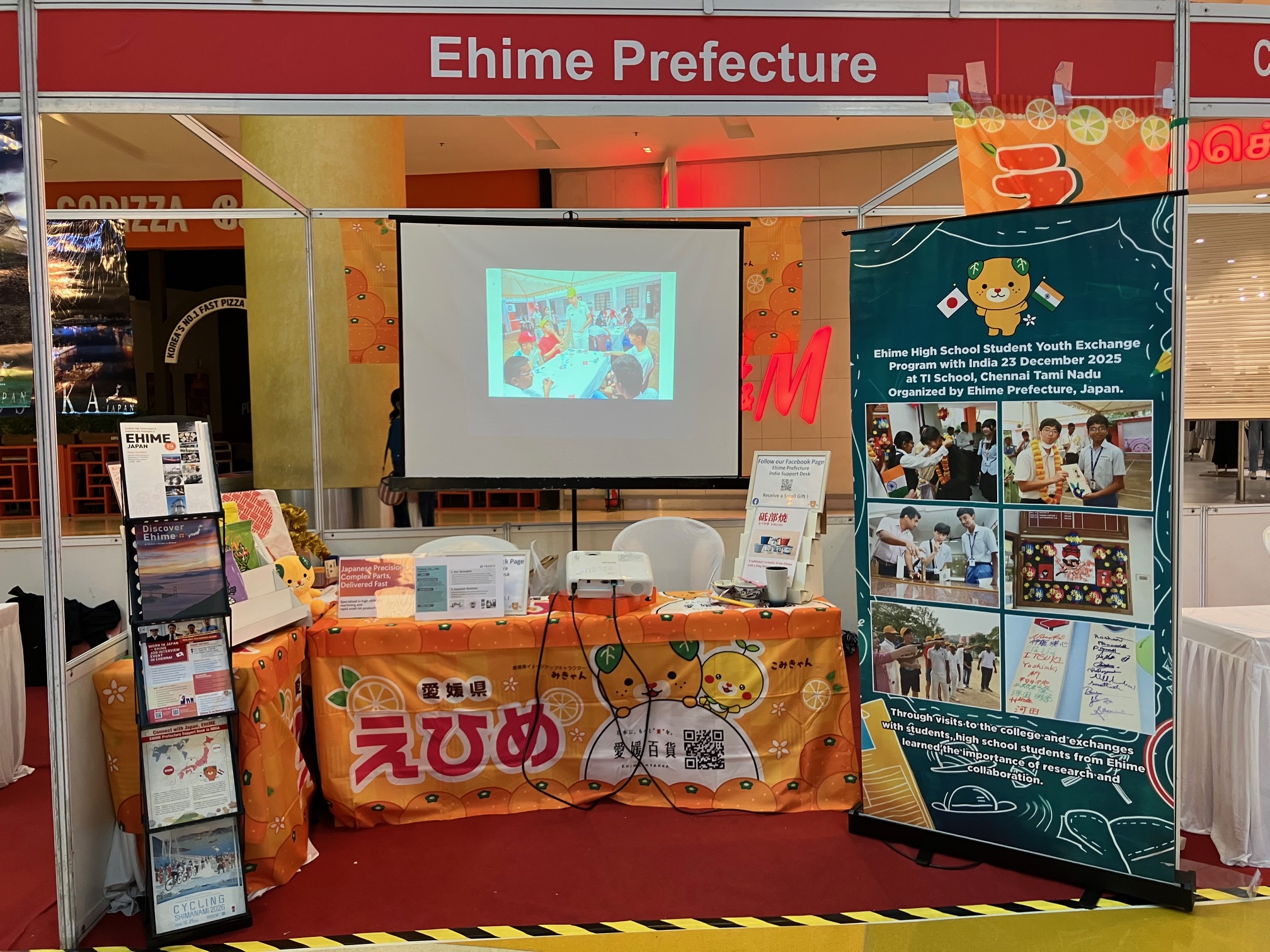 愛媛県は、2026年1月31日と2月1日に開催された「チェンナイ・ジャパン・エクスポ2026(Chennai Japan Expo2026)」に本県ブースを出展しました。本イベントは、在チェンナイ日本国総領事館が「観光・留学・雇用(キャリア)」の人的交流を目的に開催するもので、日本語を学ぶ学生や日本文化・アニメファンなど、多くの来場者でにぎわいます。本県は、前回に続いて2回目の参加となりました。